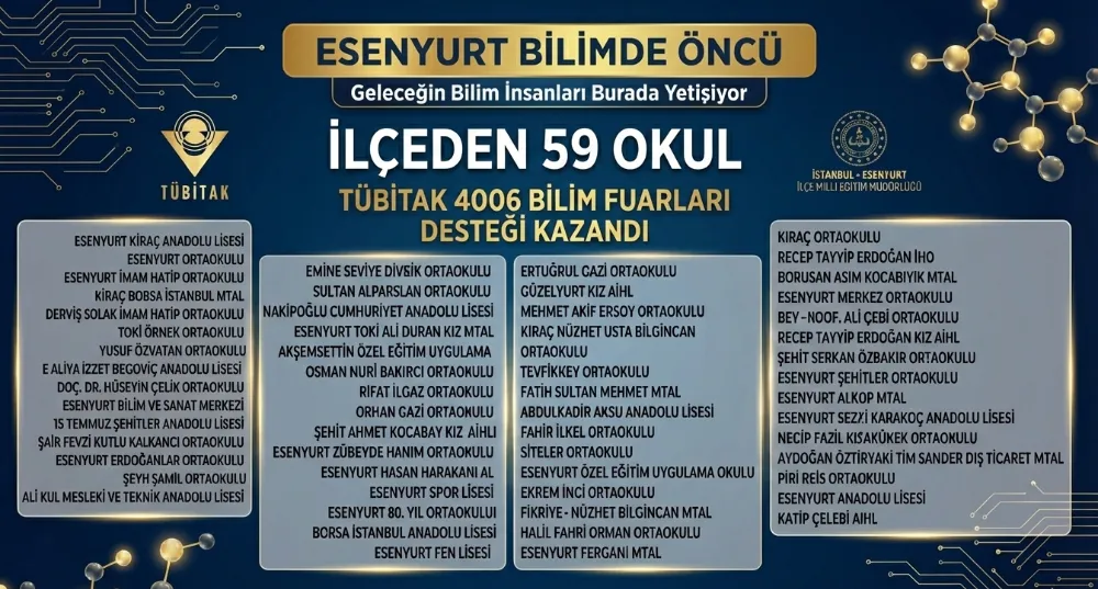 Esenyurt ‘un çalışkan çocukları ve fedakar öğretmenleri el ele vererek büyük bir destan yazdı. Eğitimde her geçen gün çıtayı biraz daha yukarı taşıyan ilçemiz, bu kez bilimsel projeleriyle tüm Türkiye’nin diline düştü. TÜBİTAK 4006 Bilim Fuarları kapsamında yapılan değerlendirmeler sonucunda, Esenyurt tam 59 okuluyla destek almaya hak kazanarak kırılması güç bir rekorun sahibi oldu. Bu gurur tablosu sadece İstanbul’un değil, memleketimizin dört bir yanındaki eğitim camiasının dikkatini Esenyurt’un üzerine çekti.