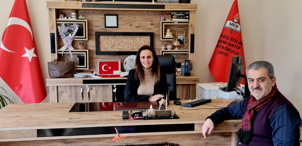 HABER / NEZİR KARAYÜN / EĞİTİMDEN HABERLER - Eğitimden Haberler imtiyaz sahibi ve Genel Yayın Yönetmeni Nezir Karayün, okul ziyaretleri kapsamında eğitim camiasındaki başarılı çalışmaları yerinde incelemeye devam ediyor. Bu kapsamda Karayün, Esenyurt Derviş Solak İmam Hatip Ortaokulu’nu ziyaret ederek okul müdürü Aslı Eren ile bir araya geldi. Ziyarette okulun eğitim anlayışı, yürütülen çalışmalar ve öğrencilerin gelişimine yönelik projeler hakkında değerlendirmelerde bulunuldu.