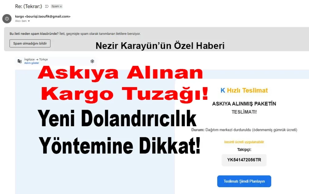 HABER / NEZİR KARAYÜN / ADOM AJANS - Son zamanlarda vatandaşların e-posta adreslerine gelen “Kargonuz askıya alındı” şeklindeki mesajlar, dolandırıcıların yeni yöntemi olarak dikkat çekiyor. Resmî kurumlardan ya da kargo firmalarından geliyormuş gibi görünen bu e-postalar, gerçekte vatandaşların kişisel ve finansal bilgilerini ele geçirmeyi amaçlayan tehlikeli bir dolandırıcılık girişimi.