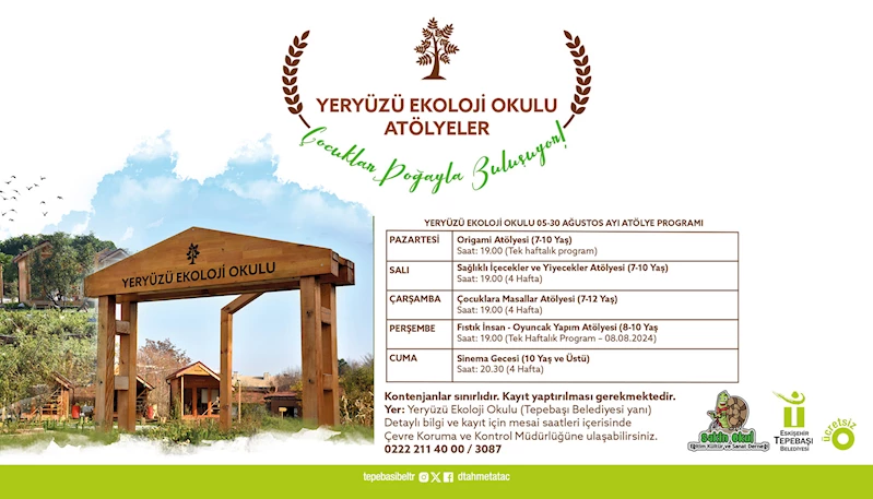 Tepebaşı Belediyesi ile Sakin Okul Eğitim Kültür ve Sanat Derneği iş birliğinde hayata geçirilen Yeryüzü Ekoloji Okulu’nda ücretsiz olarak gerçekleştirilen atölye çalışmaları kapsamında Ağustos ayı programı başlıyor.
