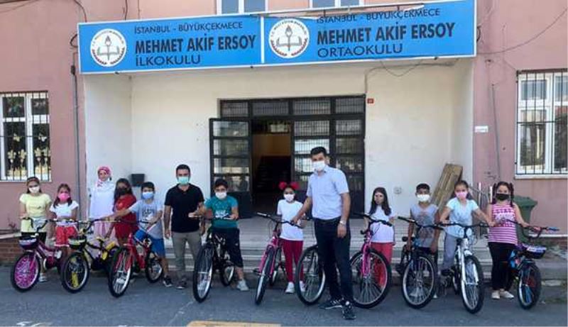 Büyükçekmece Mehmet Akif Ersoy İlk ve Ortaokulu öğrencilerine Belediye Başkanı Dr. Hasan Akgün'den talep ettikleri bisikletleri teslim edildi.