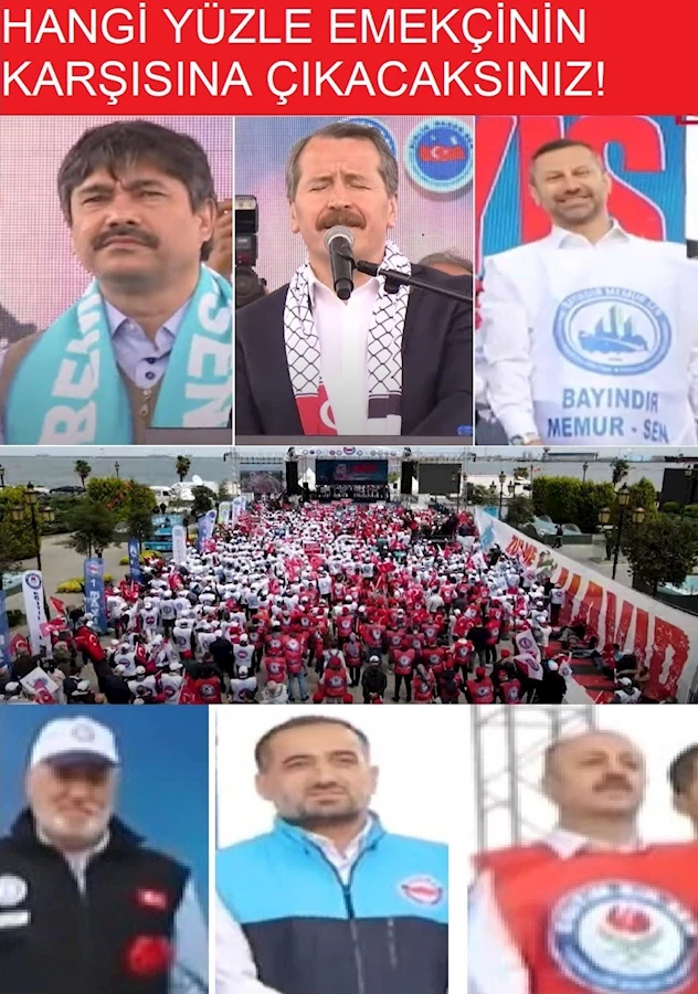 Emekçinin omuzlarına basarak yükseldikleri zirvede maaşlarını ve mal varlıklarını açıklayamayan sendika ağalarının, Kur’an-ı ifadeyle; ağızlarıyla, kalplerinde olmayanı söyleyerek 1 Mayıs’ta şov yapanlara ortak olmayın!