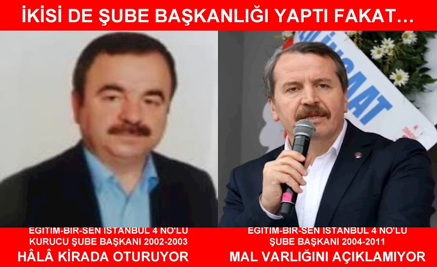 Sendikacı maaşıyla memurun maaşı arasındaki makas giderek açılmıştır. Konuyu bir örnekle somutlaştırmaya çalışalım. 2002-2003 yılları arasında Eğitim-Bir-Sen İstanbul 4 No’lu şubesinin kurucu başkanlığını yapan Şükrü Mutlu; o yıllarda çamurlu, tozlu ve topraklı olan Sultanbeyli’nin patika yollarında omuzunda su sebili ile saatlerce yürüyerek öğretmen odalarına su sebili kazandırdı. Kendisi 34’üncü hizmet yılını çalışıyor ve hâlâ oturacağı bir evi olmadığı için maaşının yarısından fazlasını (32.000 TL) kiraya vermektedir. Şükrü Mutlu sendikacılığı davası ve emekçinin menfaati için yaptı. Yine aynı şubenin 2004-2011 arasında şube başkanlığını yapan ve beş yıl öncesine kadar kirada oturan Ali Yalçın ise maaşını ve mal varlığını yakınlarının üzerindekilerle birlikte açıklamıyor. Eğer dedikleri gibi sendikacılığı dava hareketi olarak yapıyorlarsa niçin öğretmen maaşıyla yetinmeyip de 16.02.2019 tarihinde tüzüğün 58. maddesini değiştirerek sendikacı maaşlarını astronomik rakamlara yükselttiler? Demek ki dillerine pelesenk ettikleri dava, rantlarınızın kılıfı olmuş. Sendikacılığı rantı ve şahsi menfaati için yapan Ali Yalçın, değerlerine göre değil diğerlerine göre hareket ediyor. Birileri bu soylu hareketin birlerden milyonlara gelmesine; gönül verdi, emek verdi daha da önemlisi ömrünü vakfetti. Diğerleri ise bu işin edebiyatını yapıyor. Her yıl 1 Mayıs’ta emek sömürüsü yaptıkları gibi…